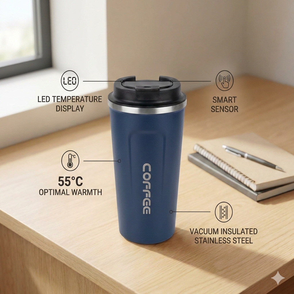 Crafted with premium materials, the mug keeps your beverages hot for longer and maintains a comfortable grip. Its sleek dark blue finish adds a premium look to your desk, home, or office. Whether you’re enjoying coffee, tea, or any hot drink, this mug is the perfect companion for a smart and stylish lifestyle.