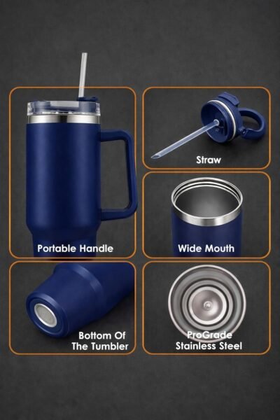 Be the first to review “Stainless Steel Insulated Travel Tumbler 1200ml with Handle & Straw – Double Wall Vacuum Coffee Mug (Blue)”